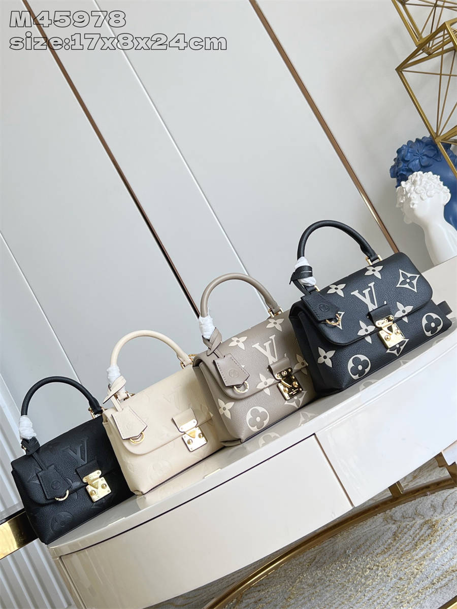 IIK【独家实拍 M45978黑丝印 】本款 Madeleine BB 手袋为 Monogram Empreinte 皮革铺陈大号 Monogram 压纹和印花,其 S-lock 锁扣在 Pochette Métis 手袋中亦有呈现。巧用顶部单手柄和可拆卸肩带,优雅切换背携方式。17 x 8.5 x 24 厘米 (高 x 宽 x 长度)
