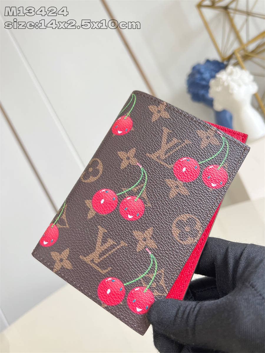 CCK【独家实拍 M13424 】本款护照套出自路易威登 x 村上隆刻系列,为经典 Monogram 涂层帆布描绘明丽樱桃图案,以玩趣活力开启旅途奇遇。牛皮革内衬再添醒目之笔,内部卡片夹层和口袋可妥善收纳随行所需。14 x 2.5 x 10 厘米 (高 x 宽 x 长度)