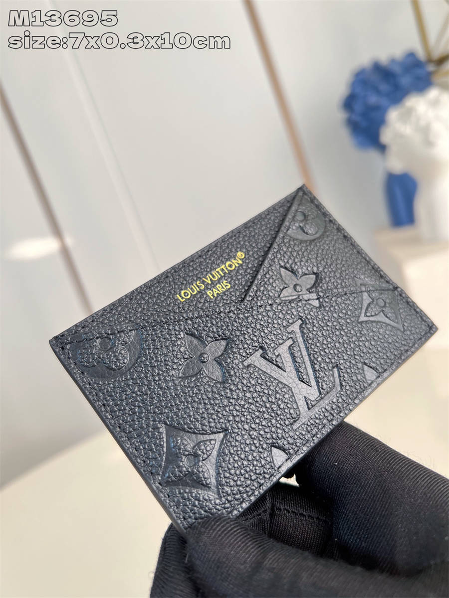 CKK【独家实拍 M13695 】Criss-Cross 卡片夹是送礼的佳选择,无论是送给个人还是爱人。这款时尚小巧的配饰灵感源自历史悠久的路易威登在阿斯尼尔的家,以几何V型切割设计重新诠释了路易威登标志性的砖砌结构。它由Monogram Empreinte皮革制成,烫印有金色字样。7 x 0.3 x 10 cm