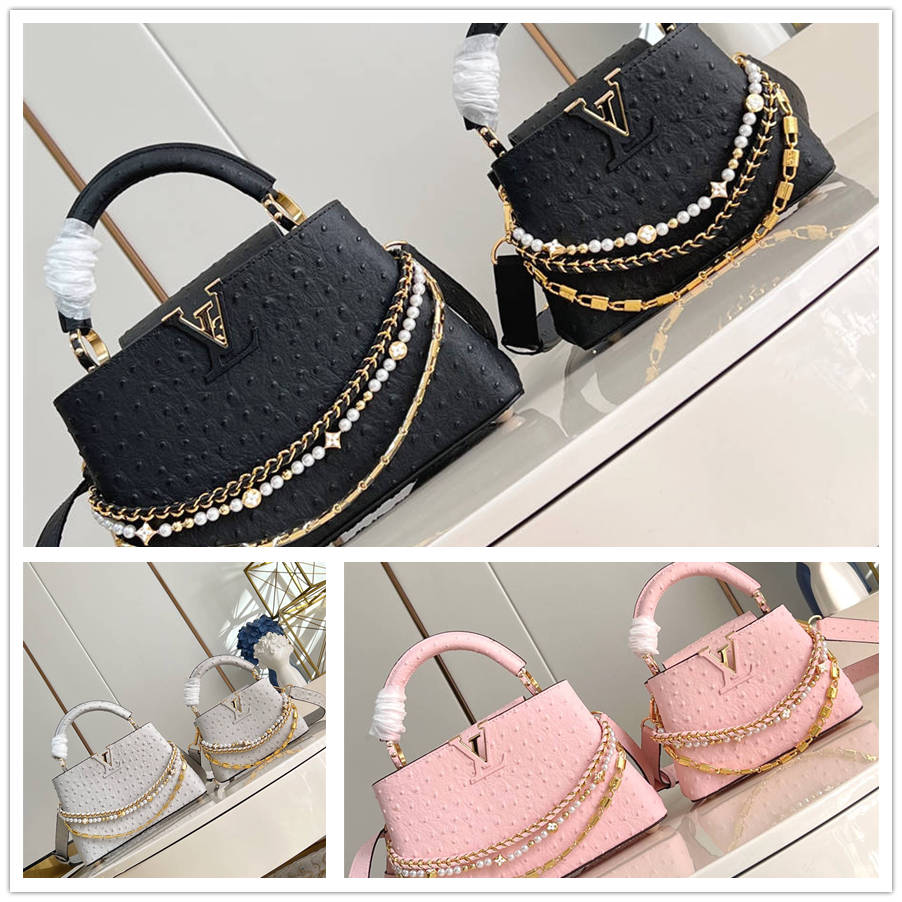 CAPUCINES 鸵鸟纹手袋48865(珍珠三合一链条款)