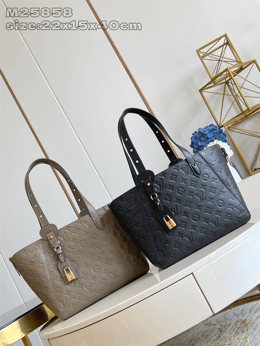 JFK【独家实拍 M25858黑压花 】本款 All In One 小号手袋为 Monogram Empreinte 皮革渲染雅致色调,与金属挂锁和名牌相映成趣。内部口袋与拉链袋实现稳妥收纳,考究构型拥有多种背携方式。可作为 Hobo 手袋或敞口式托特包,成就通勤与周末出游佳选。22 x 15 x 40 厘米 (高 x 宽 x 长度)