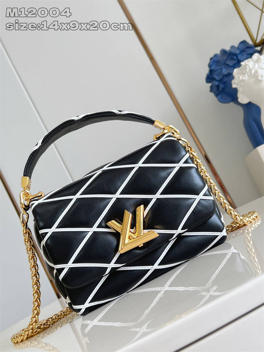 JFK【独家实拍 M12004黑间白 】本款 GO-14 小号手袋出自 2024 秋冬系列,此次采用轻薄衬垫和纤细链条,再为柔软羊皮革点缀 Malletage 绗缝图案,可轻松驾驭昼夜场合。充裕内部空间设有贴袋与化妆镜。14 x 9 x 20 厘米 (高 x 宽 x 长度)