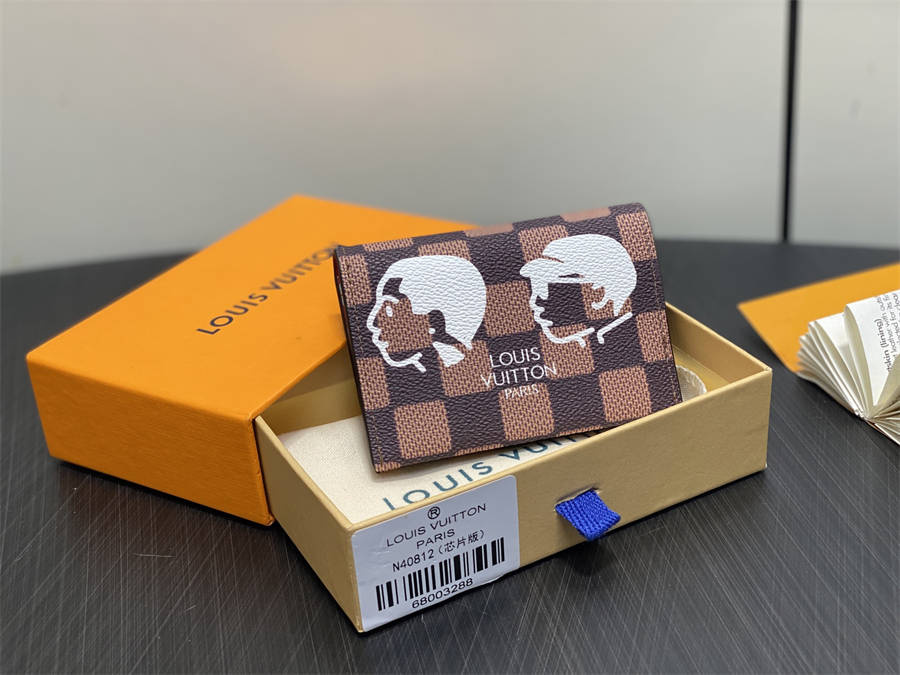 CDK N40812啡格 Lv nigo联名 头像丝印卡包钱包 当季新款 SLIM 卡夹 本款 Slim 卡夹为 Damier Ebene 帆布融入个性肖像图案,致意 Pharrell Williams 与日本设计师 Nigo 在 2025 秋冬系列的紧密合作。卡片夹层实现有序收纳,按扣开合再添功能考量。7.3 x 1 x 10.6 厘米(高 x 宽 x 长度)