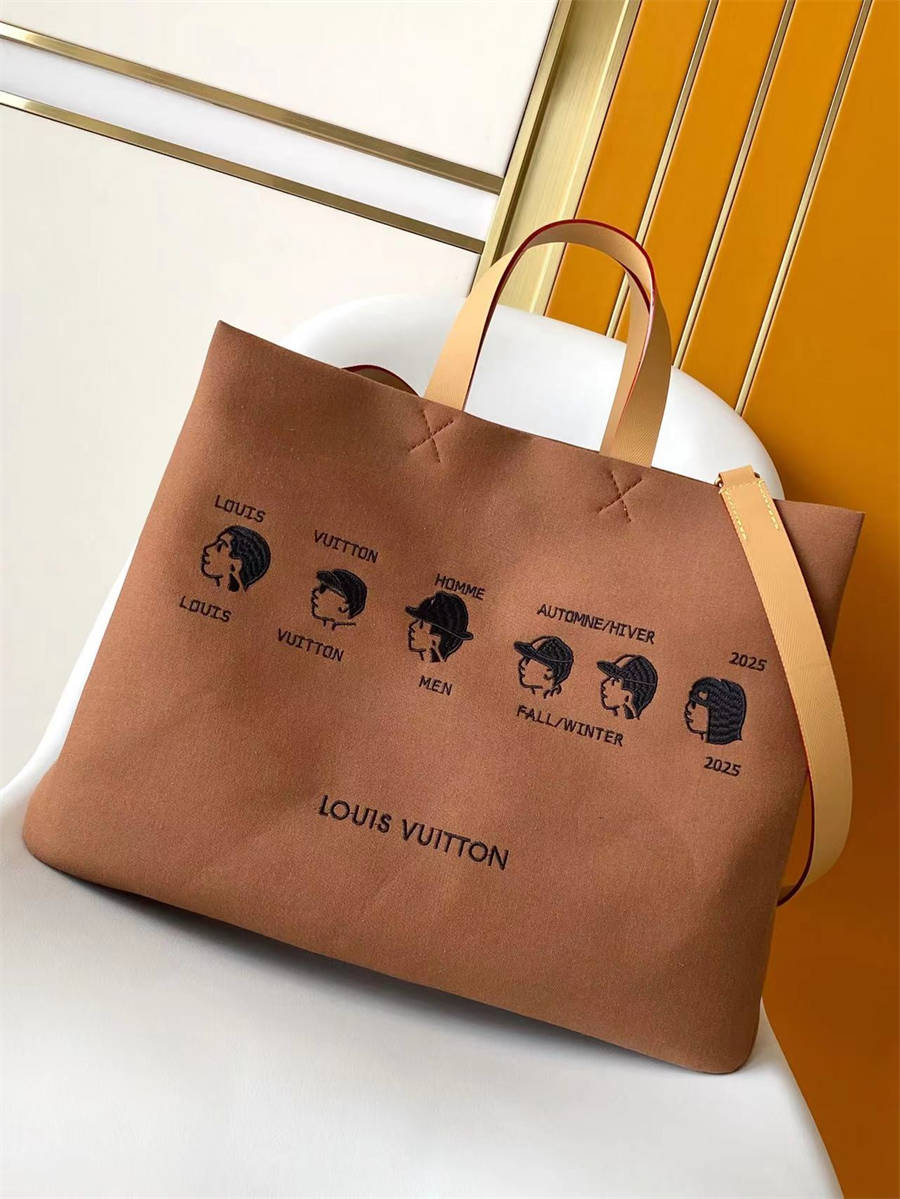 Nigo联名的系列采用的是外翻的设计结构来处理,老花变内里,帆布成包身,尤其表面的小头跟小字都是刺绣工艺,40.0 x 32.0 x 16.0 厘米 (长 x 高 x 宽)