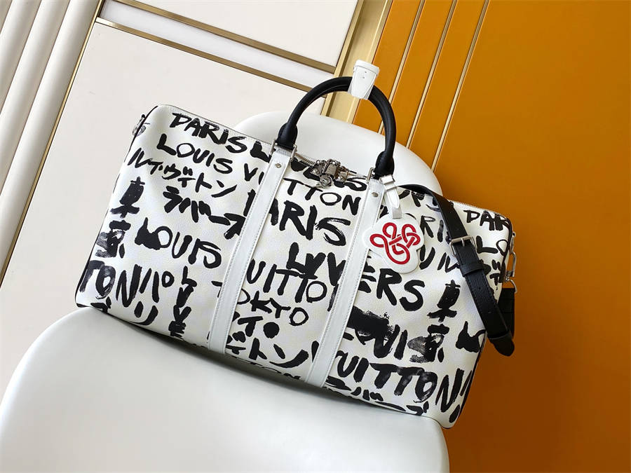 HCK 顶级原单 N40804 东京 163c01变码芯片本款 Keepall Bandoulière 50 旅行袋由日本设计师 Nigo 与 Pharrell Williams 联手创作,于牛皮革之上铺陈考究格纹,再以法语和日语抒写瞩目字样。棉质内衬图案见证 Nigo 的艺术视角,可拆卸 LV Dynasty 名牌彰显品牌身份。