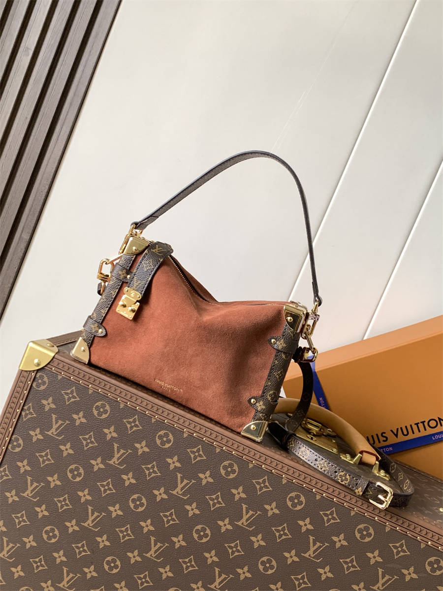 ZG最新2025秋冬系列中持续演绎品牌的制箱传统Side Trunk全皮手袋M15072采用标志性Monogram Saga头层牛皮打造.盒子包其复古质感灵感源自超模Freja Beha Erichsen在Nicolas Ghesquière首秀中穿着的经典风衣.多种携带方式的设计.令其从容应对昼夜场合切换.兼具实用功能与优雅气质.尺寸:23.5*16*8.5