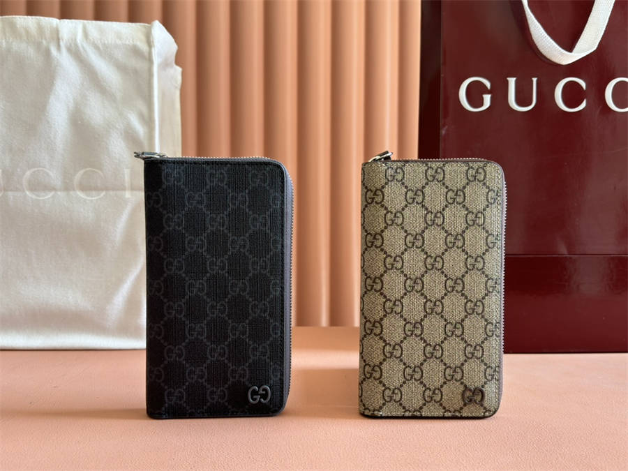 CEK【配置专柜全套】822051 新系列呈现纤薄且小巧的皮具作品,焕新融蕴多种色彩,GG标识点缀充满对比美感的双色调设计。这款全拉链钱包以灰色和黑色GG Supreme帆布匠心打造,内含多种功能设计,配以灰色光面皮革滚边和同色调GG配件。