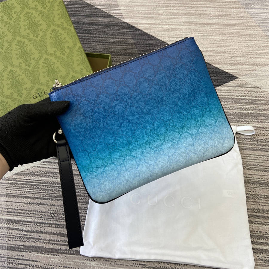 DGK【配全套专柜包装】别开生面的蓝色调渐变效果印花为这款基础功能单品倍添时尚美感。这款手拿包选用GG Monogram涂层织物制作,通体渐变印花尽显雅致格调。