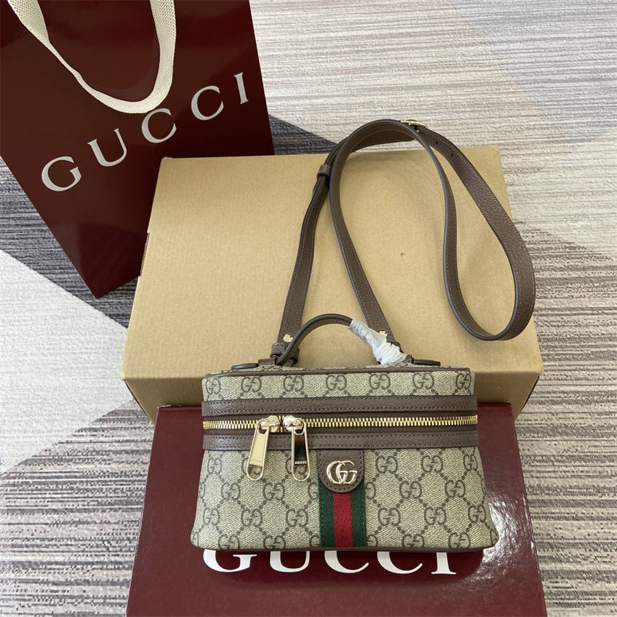 EGK【配全套专柜包装】Ophidia系列以经典条纹织带与浅金色调双G标志致敬品牌悠久传承。这款梳妆包配有一根顶部提手和一根肩带。