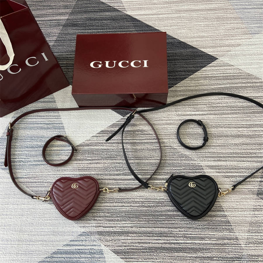 EHK【配全套专柜包装】这款GG Marmont系列迷你手袋采用俏皮可爱的心形廓形,以柔软的黑色V型Matelassé牛皮革匠心打造。包身造型简洁小巧,配以浅金色调标志性双G配件。
