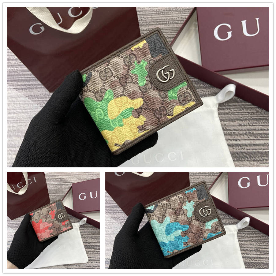 BIK【配全套专柜包装】生动迷彩结合别致配色,焕新演绎经典GG图案。这款双折钱包以大理石纹GG字母图案涂层织物打造,匠心融蕴双G细节。