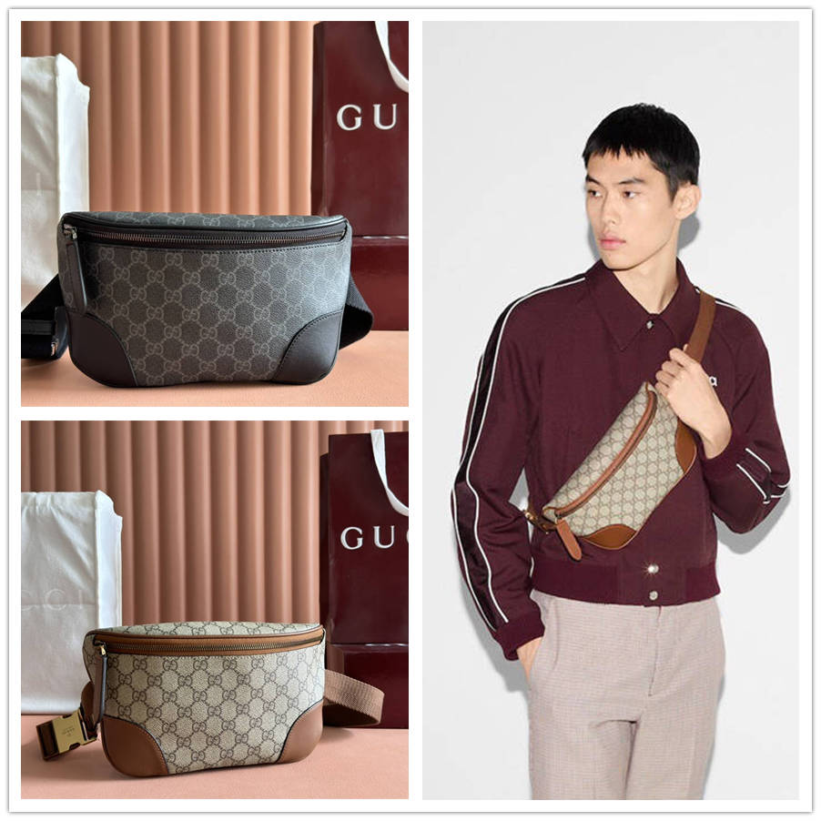 EEK【配置专柜全套包装】全新GG Emblem系列男士旅行单品焕新诠释品牌的隽永优雅风范和精湛工艺。这款腰包以全新米色和深棕色GG字母图案涂层织物匠心打造,搭配开口袋,外部D形环可挂配饰。