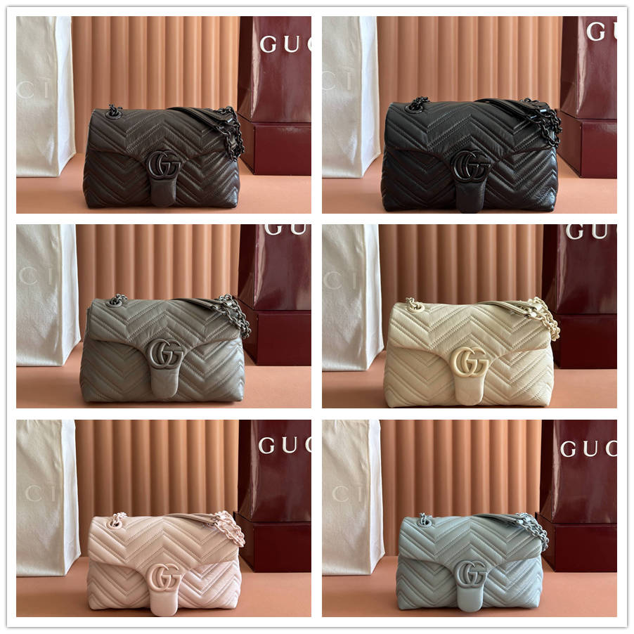 HKK【原厂配置专柜全套包装】这款品牌经典GG Marmont系列手袋,选用极为柔软的牛皮革匠心打造,缀饰双G造型配件,搭配立体多面的链式肩带,整个包身构造柔软精致。