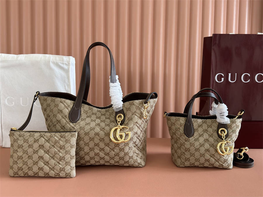 FHK GEK【配全套包装】Generation Gucci系列深入探索品牌的典藏和视觉代码,将不同世代的设计融合成一个美学叙事。这款手袋点缀标志性配件坠饰,可于挺括托特包与柔软水桶包造型间随心变换,带来多种搭配可能。