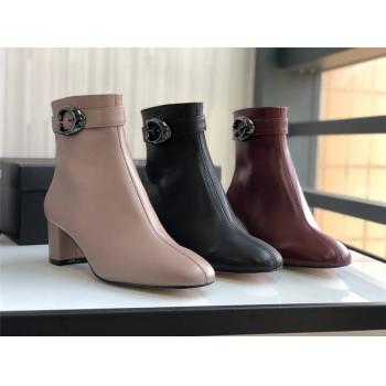 cek 2019年新款蔻驰短靴,外侧金属设计灵感来源于标志性logo,巧妙的结合现代设计理念,圆头设计,让双脚无负担,脚感舒适度百分百,侧拉链设计,穿脱更加方便快捷,鞋面:头层牛皮,内里垫脚:羊皮,跟高:5CM,大底:仿真皮大底,码数:35.36.37.38.39,原盒包装,