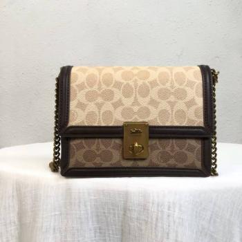 HUTTON哈顿包单肩包92308编号coach 92308新款纯原女士 hutton 哈顿包 深酒红色(咖啡色)拼色 单肩斜挎包翻盖邮差包 多种背法 随心搭配 简约经典款 尺寸: 21.5*16.5*6 PVC拼皮款式