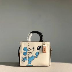 米奇DISNEY X COACH ROGUE 25号手袋C6166编号DCK款号:C6166 Disney Rouge 秋冬秀款可爱的米奇 童年回忆的迪士尼系列,你喜欢吗?Mickey Mouse 活泼俏皮的姿态活灵活现,栩栩如生 整体的图案都是刺绣出来的,手工精致细腻 重工制作 小清新的蓝白色系列搭配,手柄处的设计也是沿用当时非常流行的手提箱设计元素,不论手提,肩背或事斜挎,都让它有更多的搭配方式和适用场合 尺寸:25*20*14