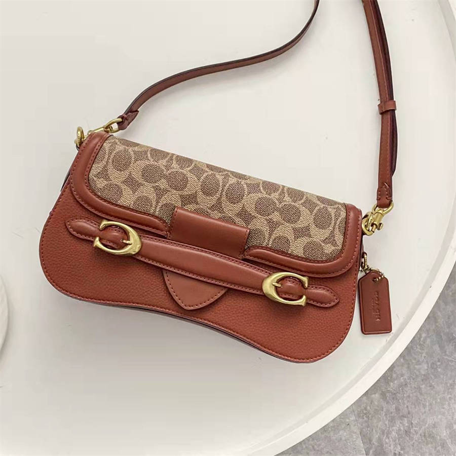 C锁复古邮差包单肩斜挎包C0757编号DGKcoach蔻驰 0757 COA** 专柜同款秋冬新款C锁复古邮差包单肩斜挎包牛皮潮流百搭潮小方包 尺寸16/27cm