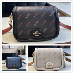 CFK C家4059 Horse Carriage 今夏大热的马鞍包型 其极具辨识度的弧形圆角的外形和折叠式翻盖的设计出名 与满版马车相结合,更彰显活力无限♾ 洋溢着青春的气息 pvc材质,一如既往的耐用 耐脏 四边都是真皮包边 超高颜值 ~ 尺寸:20*15*8 cm