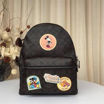 c家女款新款双肩背包 29355。迪士尼合作限量款徽章 PVC拼皮材质 超大容量 经典c纹 尺寸:30长.38高.12宽