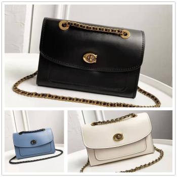 DJK C家26852 新款拼色链条单肩斜挎女包 光面羊皮 内里全反毛皮 尺寸:26/18/10
