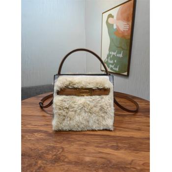 编号334迷你 TORY BURCH 汤丽柏琦 LEE RADZIWILL迷你双层毛茸 自带气场的 Lee Radziwill 迷你多层手提包,柔和解构的造型结合多层材质,呈现多种色彩。由像风衣领一样展开的分层式皮革组成;包口可敞开、扣上一半的纽扣,或全部封闭。该包款选用羊毛皮和绒面革精心打造,饰以品牌标志性的钥匙与锁扣。系列以 Lee Radziwill 女士的名字命名,她勇敢无畏,自成一派。 美利奴羊毛皮,绒面革饰边 皮革提柄,垂直携带高度为9cm 可调可拆卸斜背带,垂直携带高度为56.5cm 2个内部卡袋 高16.0cm,长19.0cm,深9.5cm 75966
