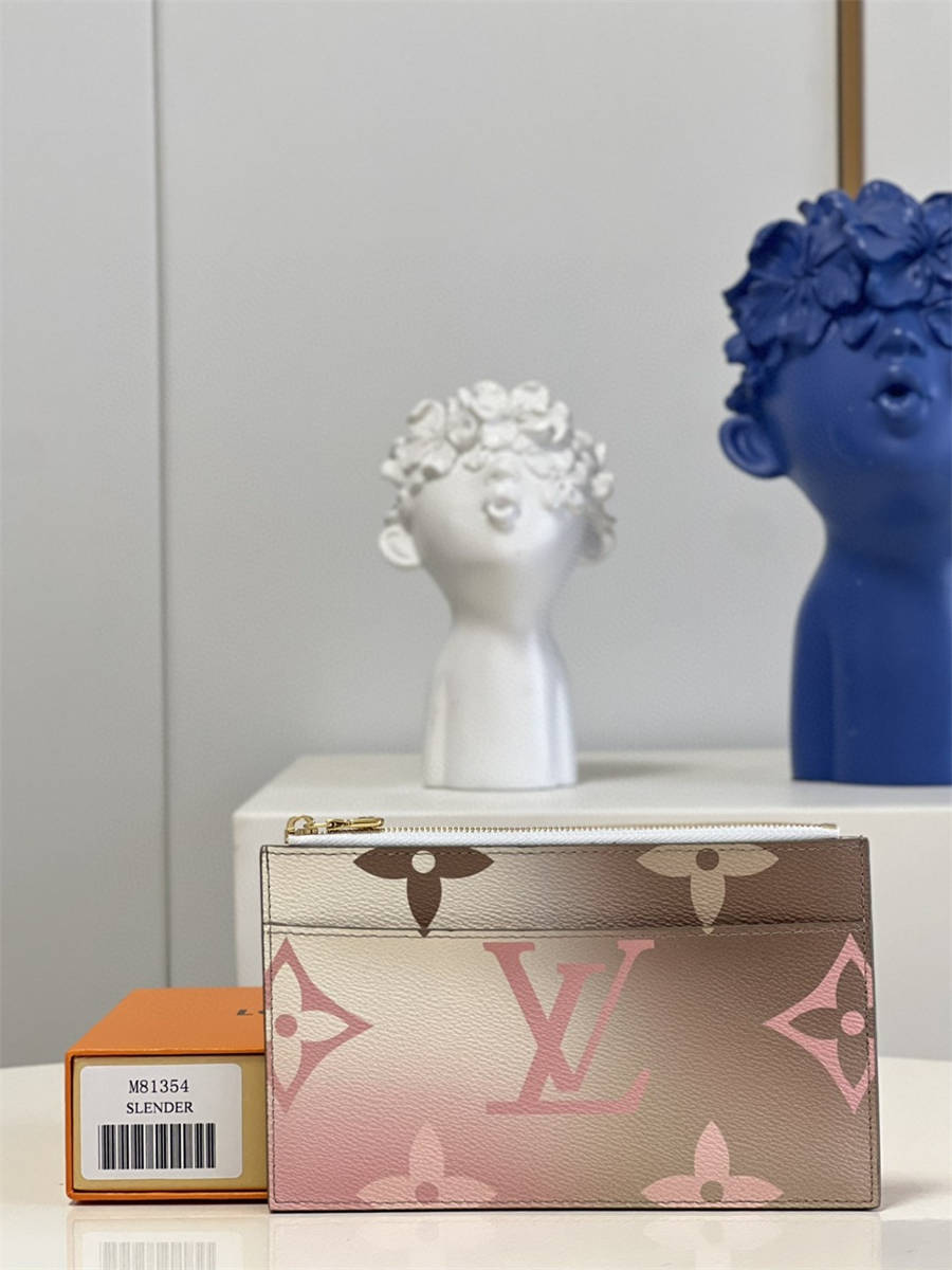 CCK【独家实拍M81354】Spring in the City 系列 Slim Purse 手拿包取材 Monogram 帆布,以渐变色彩临摹天边暮色。流畅构型设有中央拉链隔层、外贴袋、外隔层和卡片夹层,亦可收入手袋中。 详细特征20 x 11 x 0.5 厘米 (长度 x 高 x 宽)