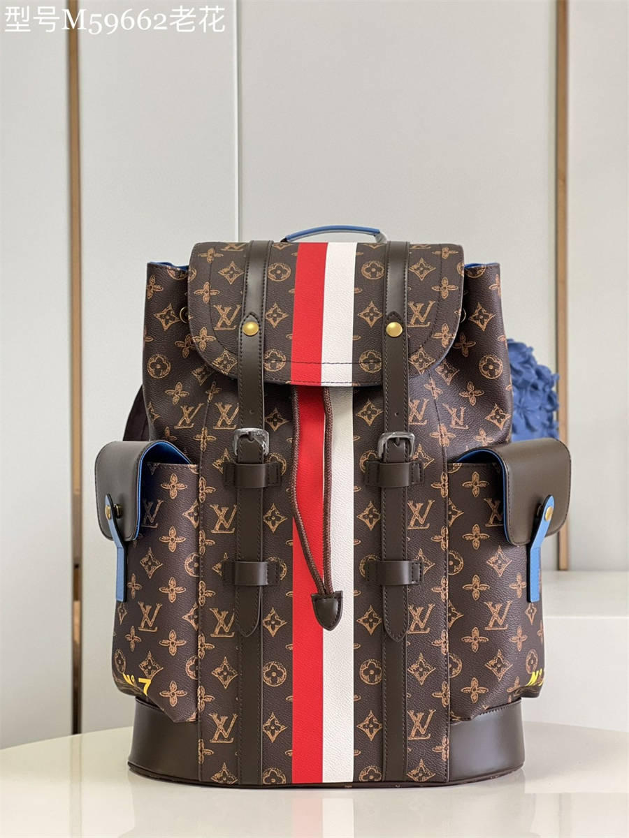 JFK【独家实拍M59662】Christopher 小号双肩包 着力展现 Virgil Abloh 在 Trunk L’Œil 胶囊系列中对两极碰撞的视觉探索:涂层帆布以不规则 Monogram 图案流露复古韵味,饰边和内衬注入摩登气息。尺寸:38 x 44 x 21 cm