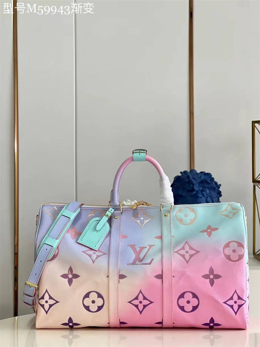 【独家实拍M59943渐变】路易威登经典 Keepall 旅行袋浸染宛如朝阳的粉彩色调,活力迎接 2022 春季。Monogram 帆布呈现柔和光彩,随身上机行李尺寸不失充裕收纳空间。详细特征45 x 27 x 20 厘米 (长度 x 高 x 宽)