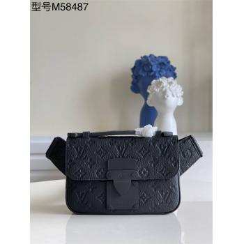 HDK【独家实拍M58487】S Lock Sling 手袋 由 Monogram 压纹黑色 Taurillon 皮革制成,优雅现代。创意磁吸锁扣以路易威登传统硬箱锁扣为灵感打造,可确保物品安全无虞,便于拿取。配有 LV 标识肩带与压纹手柄,时尚实用,适合日常背携。 尺寸:21 x 15 x 4 cm