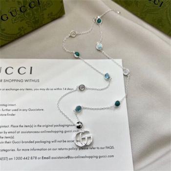 CIK 独家渠道货!Gucci古驰蓝色小雏菊项链 超级仙 ,经典的双G logo 上面镶嵌了托帕石浅浅的蓝色超级美。融化了我的少女心。520情人节超级推荐,植物世界的自然之美继续为Gucci设计理念提供源源不绝的灵感。这款双G手链采用纯银材质制作而成,在卡口处饰有别致的花朵吊坠。无边序曲系列运用繁复华美的细节低调展示品牌的设计美学。链长可调节 配送全套包装 送人自用都非常合适!