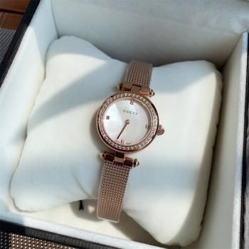 DHK 渠道货原装瑞士石英机芯,工厂一手价出!爆款硬货,全=网独家!古驰Gucci镂空款,一表一码配吊牌,二码合一,独家出货,绝对价格优势,纯原厂正品,28毫米表径,镂空表壳设计,天然珍珠贝母面,今年最火的金属网带搭配,原盒+30!可配最新绿色包装。