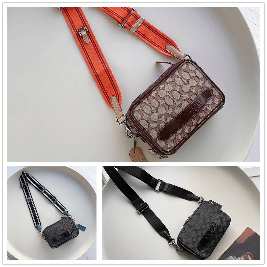 CGK C家新款。 C3780/C2610,高品代购级,最新款男士相机包3色出,色调协调对比,有C布刺绣,有C料老花选择,全都拼接头层牛皮,宽织带肩带,复古做旧款,双拉隔层,小小的一个相机包,内袋设有透气网隔层,很有逼格。说它是男士相机吧,女士上去也是绝绝子,易守难攻。方正定型,配有手插带,相机包的天花板。三色原版开。尺寸约19/5/13