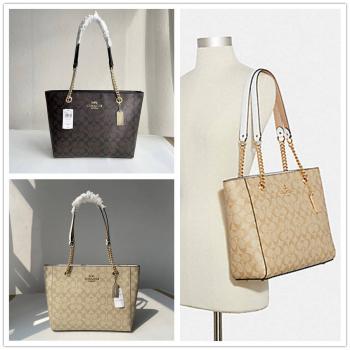 DIK 纯原 COACH 蔻驰C8148,Cammie系列,最新改款链条托特包,链条接皮肩带,长短刚好适合双用,腋下手提都能服众,袋口拉链款,安全可靠,原版开,尺寸约31x10x27cm 袋口40。