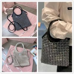 JKK Miumiu家新款钻石包,这款手袋通体覆盖由人造仿水晶组成的几何图案,细节精致考究,经典字母徽标增添别具一格的格调与辨识度,配有可拆卸可调节皮革长肩带,实用性更好,钢制五金配件,缎面衬里,带贴袋,5BA281 尺寸:20 cm X 24 cm