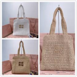 BKFK MIUMIU 夏日托特编织包,订制日本进口拉菲草,非市面普通PP草,材质与正品无差异,包型线条流畅,设计精致考究,质感轻盈,现代设计焕新重释沙滩包概念,正面饰以撞色徽标,增添标志性元素,内配亚麻混纺拉链隔层袋,时尚又实用,上身慵懒酷感十足又显落落大方,夏日出行绝佳选择,5BG230 尺寸:38.5X 40 X10cm