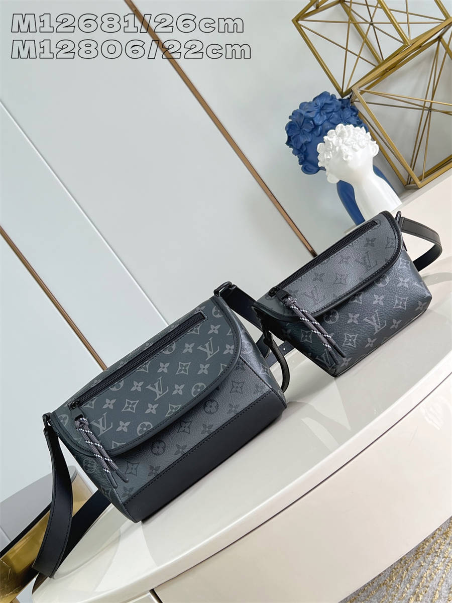 【独家实拍 M12806 】本款 Pulse 迷你手袋取材 Monogram Eclipse 涂层帆布,以简洁线条和运动元素传递摩登格调。精巧构型内设主隔层,翻盖上的拉链口袋点缀线绳拉链头。FIK GDK