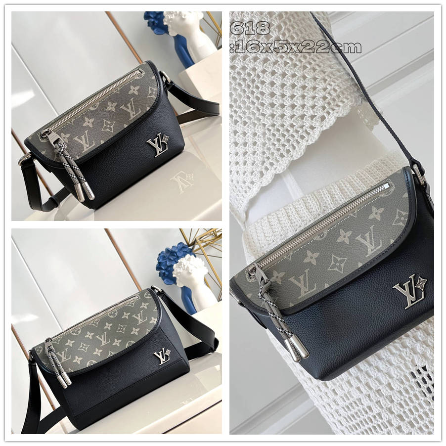 【独家实拍 M12618 】Pulse 迷你手袋匠心拼接传统皮革与 Monogram 帆布,令舒适质感与功能设计达成平衡。LV 字母彰显品牌格调,线绳拉链头末端闪烁金属光泽。翻盖内外分别设有贴袋和拉链袋,肩带可通过侧面圈环调节长短。GFK HKK