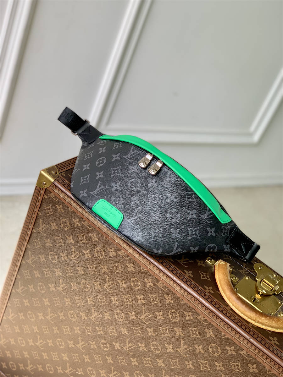 本款 Discovery 腰包取材 Monogram Eclipse 帆布,搭配明丽皮革元素和做旧金属件,再以双拉链开合与后部贴袋妥善存放个人物品。雅致设计适宜肩背、斜挎或系腰。