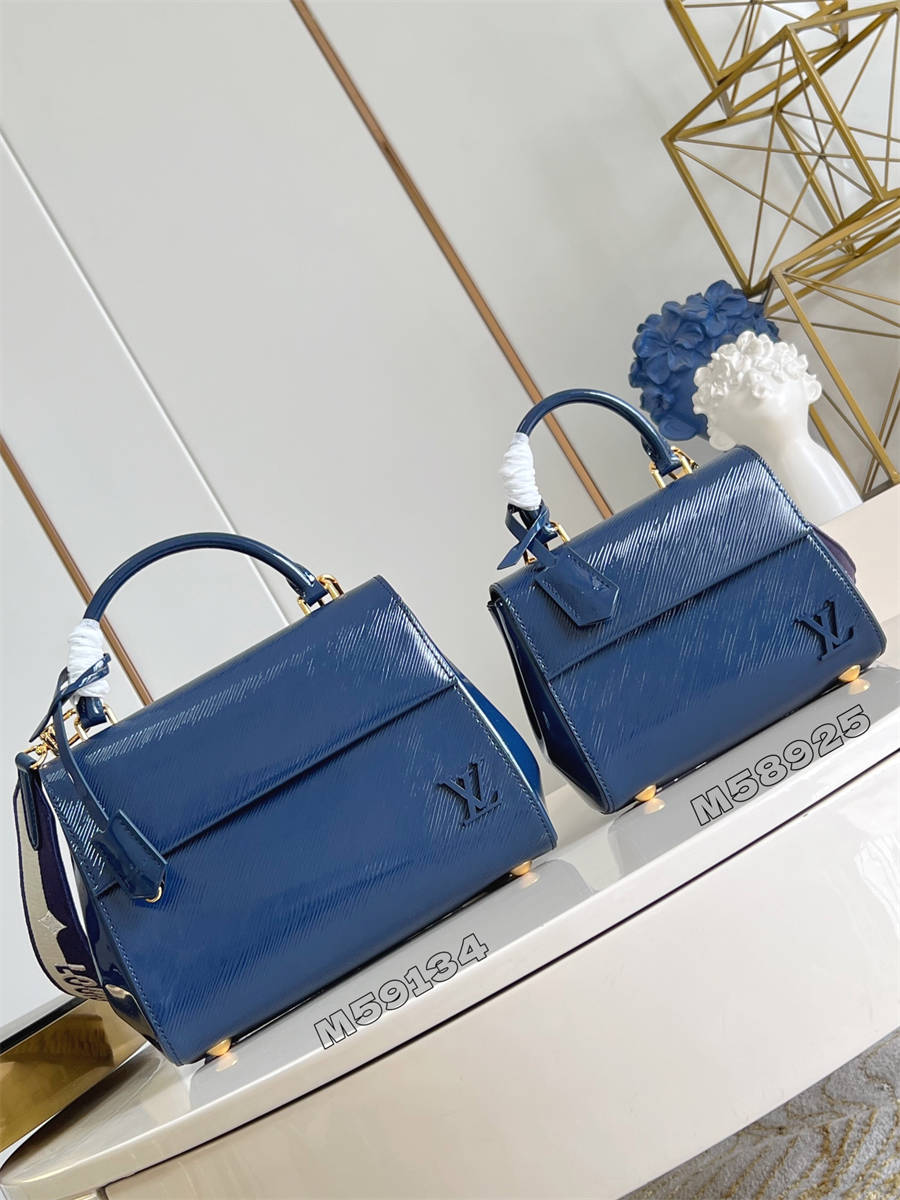 【独家实拍 M58925深蓝 】M13854 本款 Cluny 迷你手袋取材纹理细腻的 Epi 皮革,再借树脂 LV 标识与撞色内衬丰富细节。提花肩带以路易威登标识和 Monogram 花卉分饰两面,拆卸后可轻松驾驭正式场合。JKK JFK