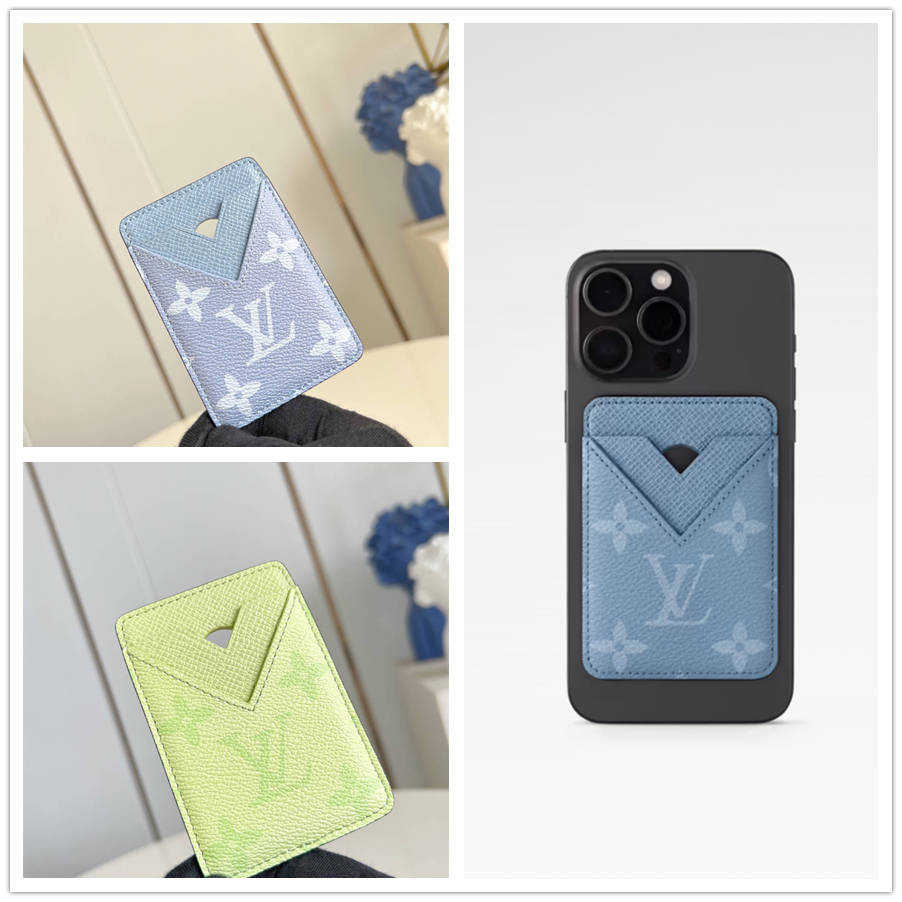 CCK【独家实拍 M14119蓝 】本款 Magnet 卡夹取材 Monogram 涂层帆布和 Taïga 牛皮革,以内置磁性设计轻松吸附配备 MagSafe 磁吸技术的 iPhone 手机,可为设备增添一抹鲜明亮彩。V 形卡片夹层便于妥善放置信用卡和交通卡。9.5 x 0.5 x 6.5 厘米 (高 x 宽 x 长度)