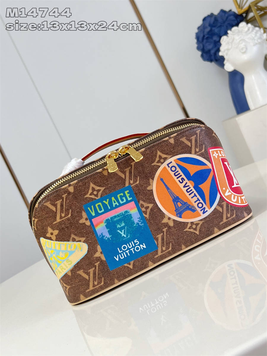 FKK【独家实拍 M14744 】本款 2 Compartments 盥洗袋为 Monogram 涂层帆布搭配牛皮革饰边,以路易威登旅行贴纸致意上世纪之交的旅行风尚。内隔层实现轻松收纳,双拉链开合再添功能考量。13 x 13 x 24 厘米 (高 x 宽 x 长度)