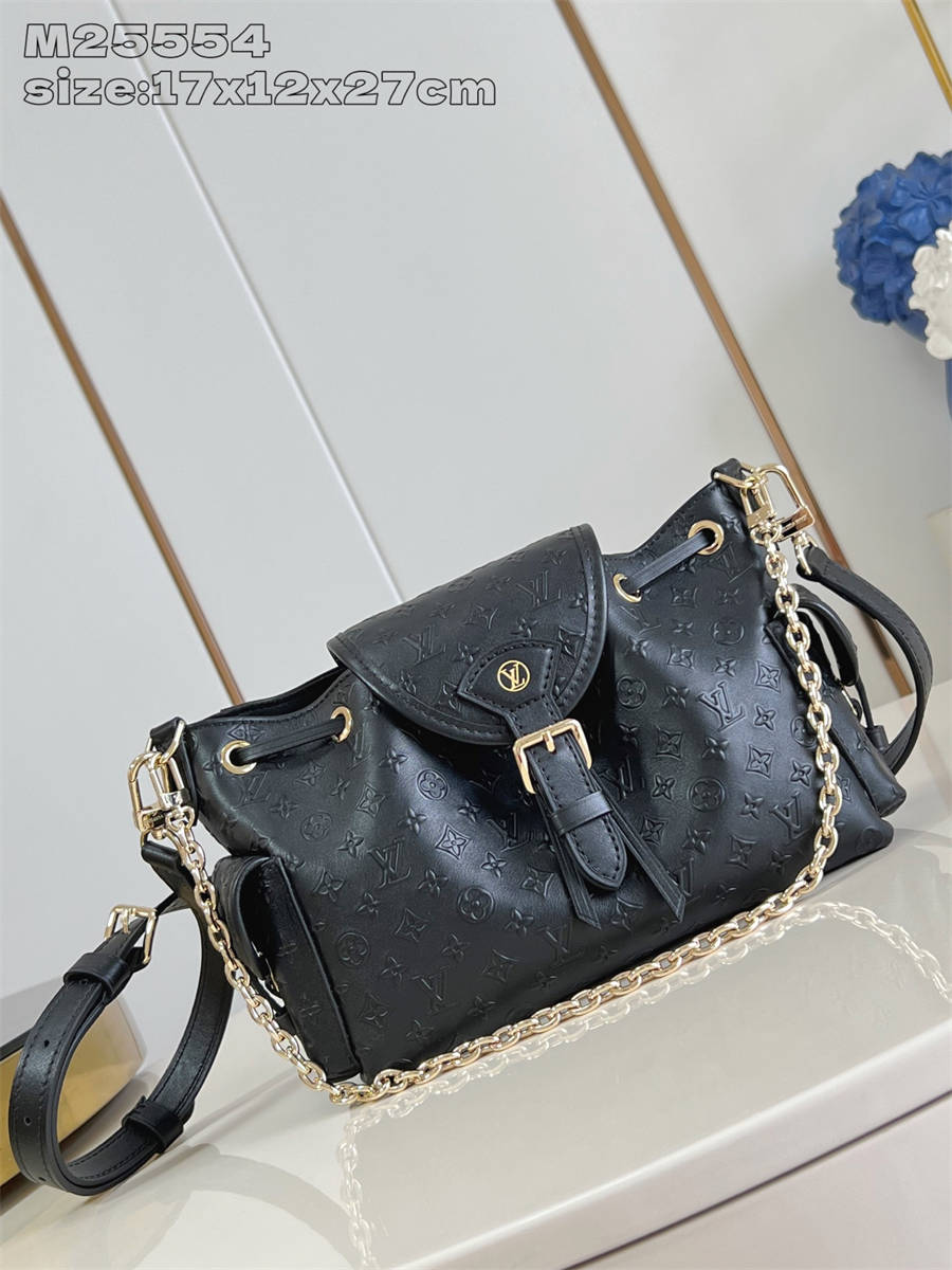 IDK【独家实拍 M25554 】Odyssée 手袋出自 2025 早秋系列,巧妙回溯 2024 Cruise 早春系列的 Excursion 双肩包设计,以经典笔触致敬路易威登的旅行传承。牛皮革包身铺陈 Monogram Bold 图案,装饰搭扣和可拆卸链条点睛考究细节,侧袋令钥匙或口红轻松随行。17 x 12 x 27 厘米 (高 x 宽 x 长度)