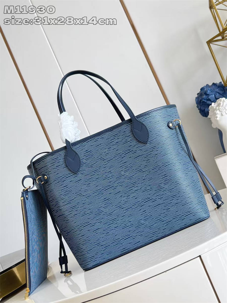 JKK【独家实拍 M11930蓝白纹 】M14856 這款經典的Neverfull MM手挽袋糅合雋永設計及傳統細節,非常適合上班及其他場合攜帶。全新版本以標誌性的Epi皮革製造,兩側備有可調節鬆緊的綁帶,可締造束緊廓形。袋內容量寬敞,足以存放一部13寸手提電腦,而可拆式拉鏈收納包可用作手拿包,亦可作額外口袋收納貴重物品。31 x 28 x 14 厘米 (長度 x 高度 x 闊度)