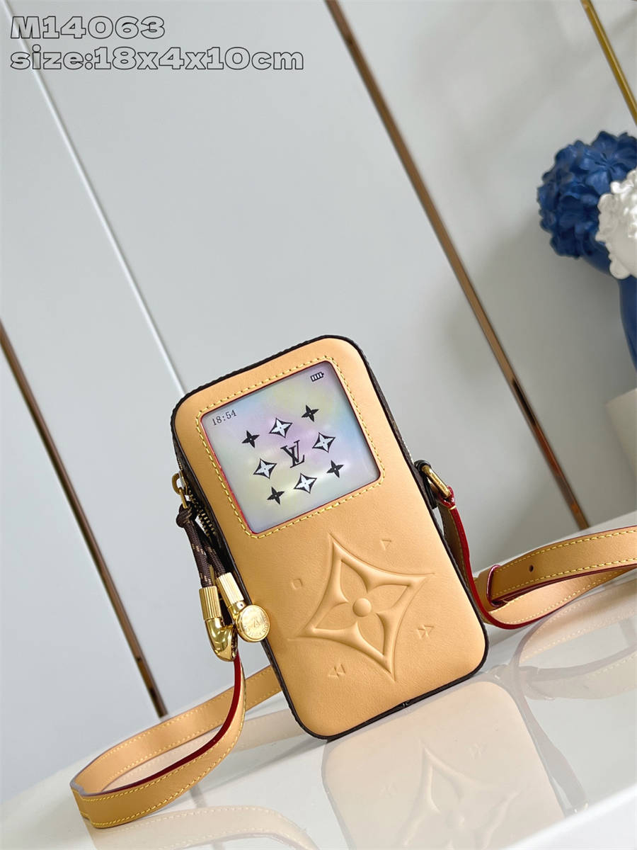 HDK【独家实拍 M14063 】Music Player Wearable Wallet 手袋结合牛皮革和 Monogram 帆布,向昔日数码音乐播放器撷取灵感,以 LV Blossom 标识描摹界面,并借 LV 仪表板图案演绎装饰屏幕。轻启拉链即现深邃织物内衬,可存放手机、卡夹和钥匙等。18.5 x 4.5 x 10.5 厘米 (高 x 宽 x 长度)