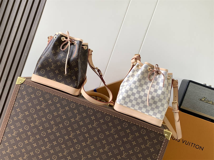 本款 Noé BB 水桶包致意 1932 年 Gaston-Louis Vuitton 应香槟酒商要求设计的潮流酒袋,延续其标志性轮廓和抽绳开合元素,为当代生活注入经典意蕴。Damier Azur 帆布塑造贴身构型,可调节皮革肩带实现舒适肩背和斜挎体验。