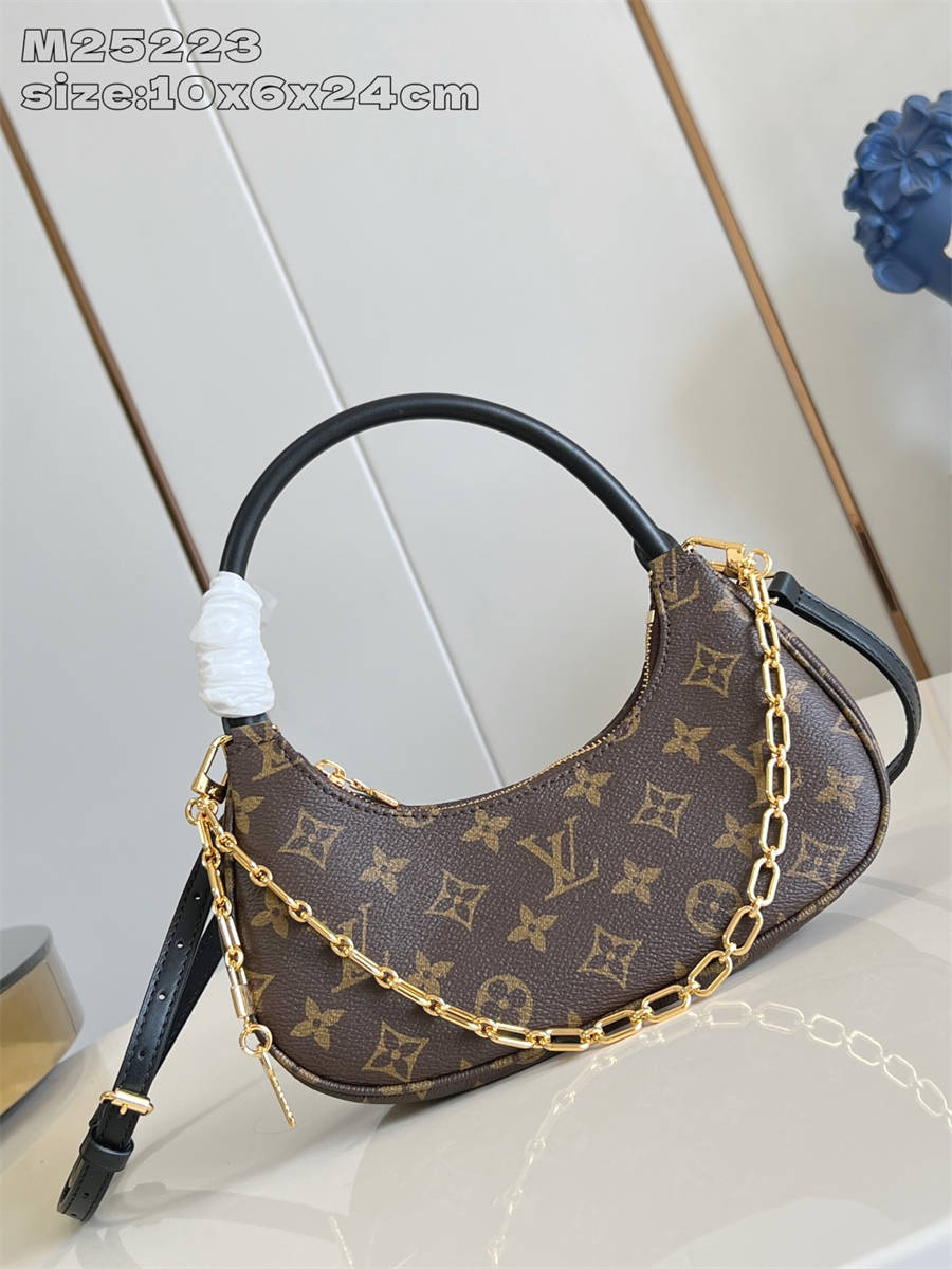 FFK【独家实拍 M25223 】本款 Catchy 小号手袋为帆布勾勒牛皮革饰边,以经典 Monogram 图案致敬品牌传统,成就又一灵巧之选。利落构型令日常所需轻松随行,双侧滑带方便调节包身轮廓,可拆卸金属链条与钥匙造型装饰相映成趣。10 x 6 x 24 厘米 (高 x 宽 x 长度)