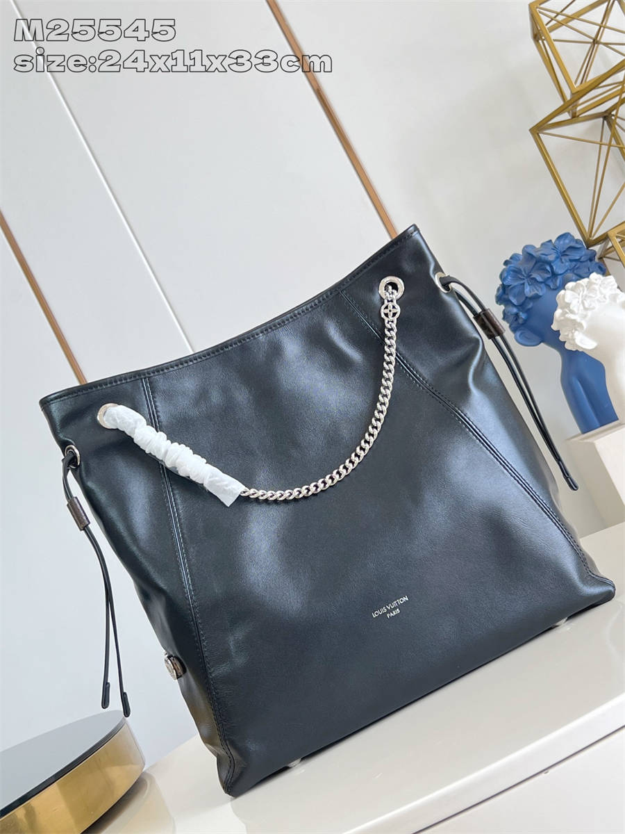 IFK【独家实拍 M25545 】Off Duty 中号手袋出自 LV Vibe 系列,可为各式造型注入前卫摇滚风范。羊皮革包身配有莹泽金属件,LV Circle 标识栖身一侧。24 x 11.5 x 33 厘米 (高 x 宽 x 长度)