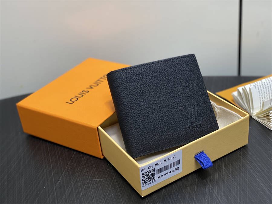 顶级原单 M25944黑色 荔枝纹全皮短款西装夹 Multiple wallet 钱包 采用柔韧且耐用的打蜡处理的小牛皮材质,展现优雅精髓的紧凑的多重钱包。结合高级的粒面皮革材料和浮雕处理的LV首字母,带来令人愉悦的触感的设计。拥有多个可以存放卡片和收据的插槽、两个内部口袋和两个可以存放钞票的储物空间的实用物品。11 x 11 x 1.5厘米。