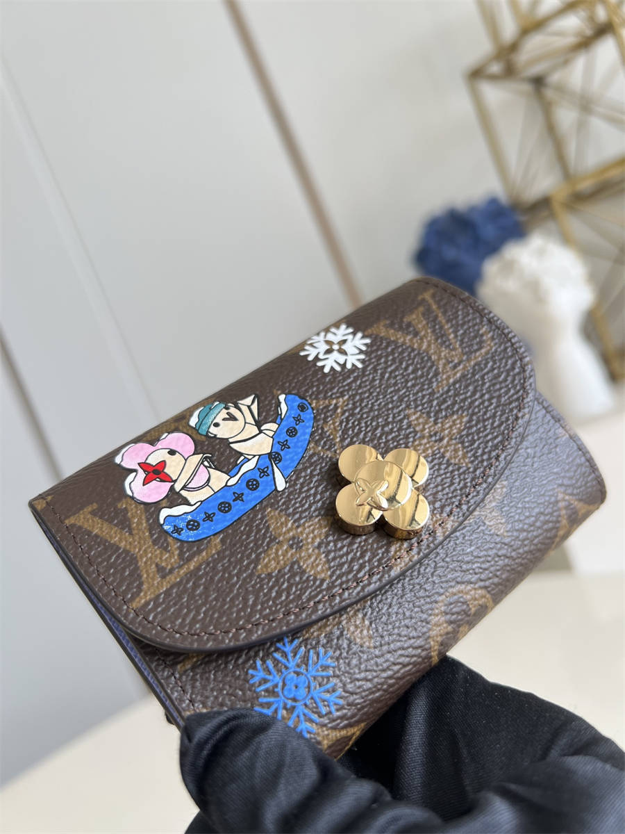 CCK【独家实拍 M15323 】Vivenne Wintery Travel 系列为 Rosalie 零钱包带来诙谐新意。Vivienne 造型按扣和正面插画妙趣横生,标志性 Monogram 帆布和撞色皮革构型彰显品牌精湛匠艺,口袋和隔层妥善收纳贵重物品。8 x 2.5 x 11 厘米 (高 x 宽 x 长度)
